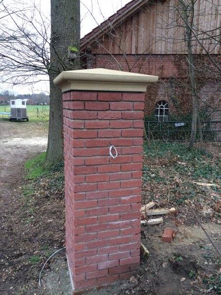 Hier biete ich Ihnen unsere aufwendigste Abdeckung mit einem umlaufendem Profil (Überstand 9cm) und einer Verdachung an. Die Gradzahl der Verdachung kann frei gewählt werden. Die Verdachung auf den Bildern hat ca. 10 bis 12 Grad Neigung. Die Kappe ist bis zur Oberkante des Profils ca. 13,5cm stark, plus die Verdachung. Die Höhe der Verdachung richtet sich nach der Gesamtgröße der Kappe und der Neigung. Der Preis richtet sich nach der Größe der Abdeckung. Der Preis für den qm beträgt 695€.