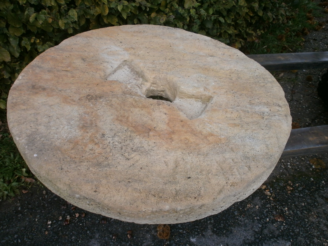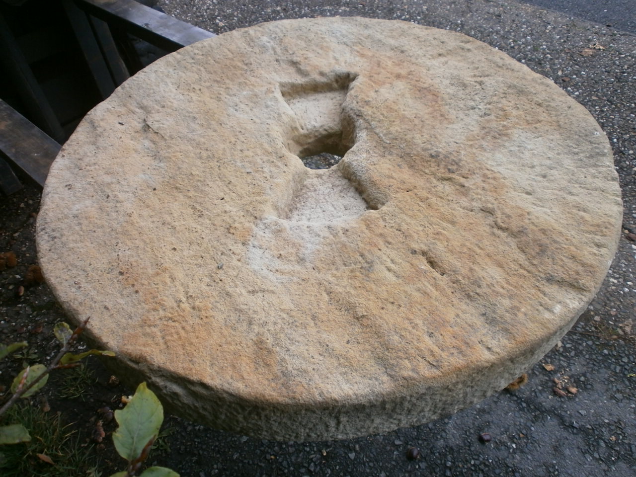 Mühlstein aus Sandstein. Durchmesser: ca. 78cm, 9,5cm stark