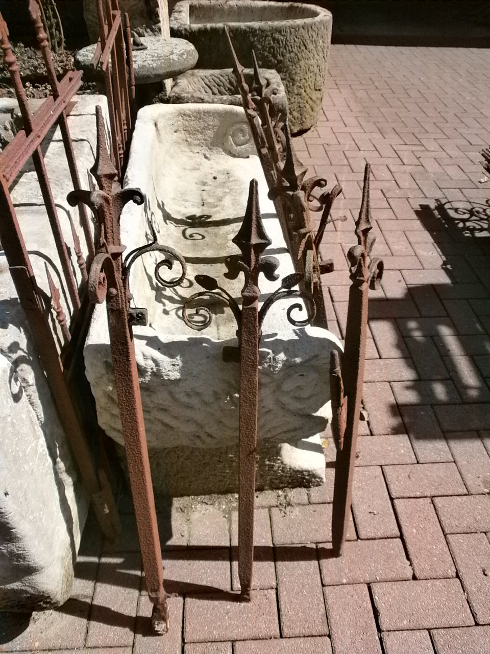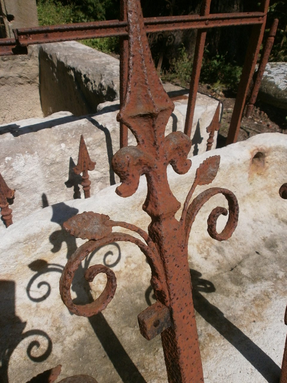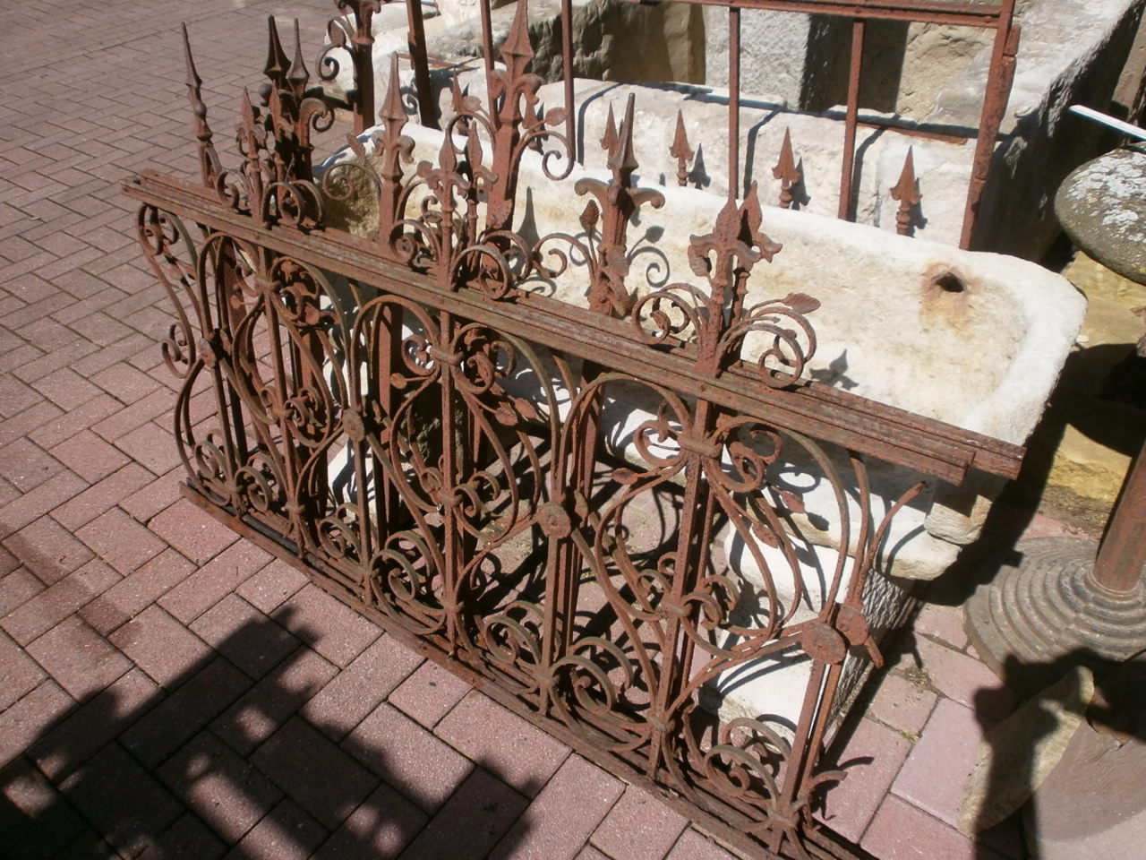 Hier biete ich Ihnen einen antiken Zaun aus Schmiedeeisen mit Pfosten an.