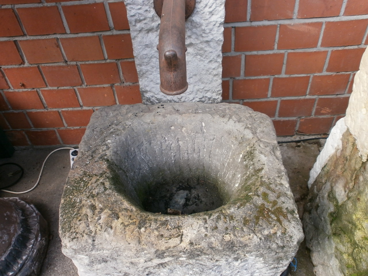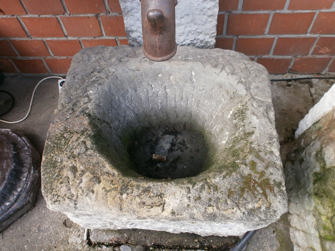 Die Pumpe wird im Trog verbaut und mit einer Sandsteinplatte verdeckt.