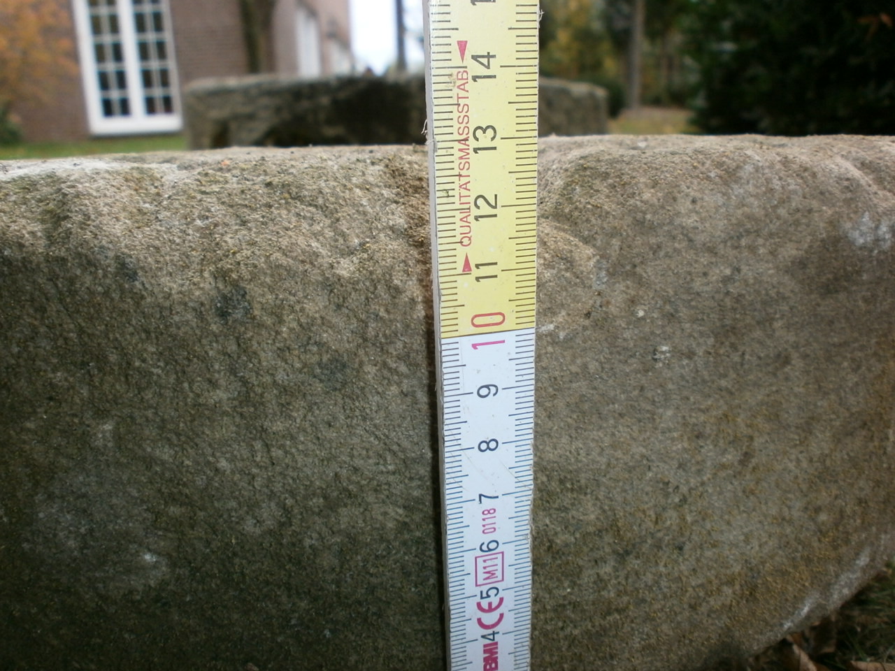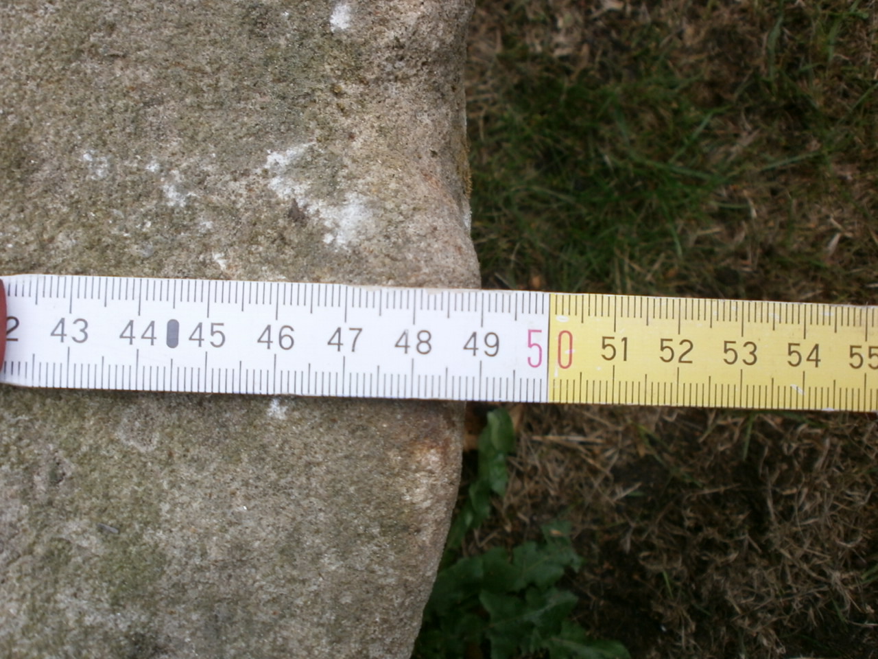 Der Stein ist mit der Zeit nicht mehr ganz rund, deshalb habe ich mal den größten und den kleinsten Durchmesser angegeben.