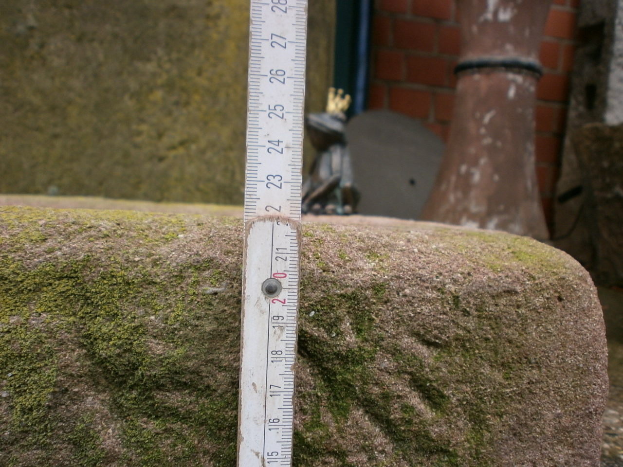 Die Pumpe ist im Trog verbaut und mit einer Sandsteinplatte abgedeckt.