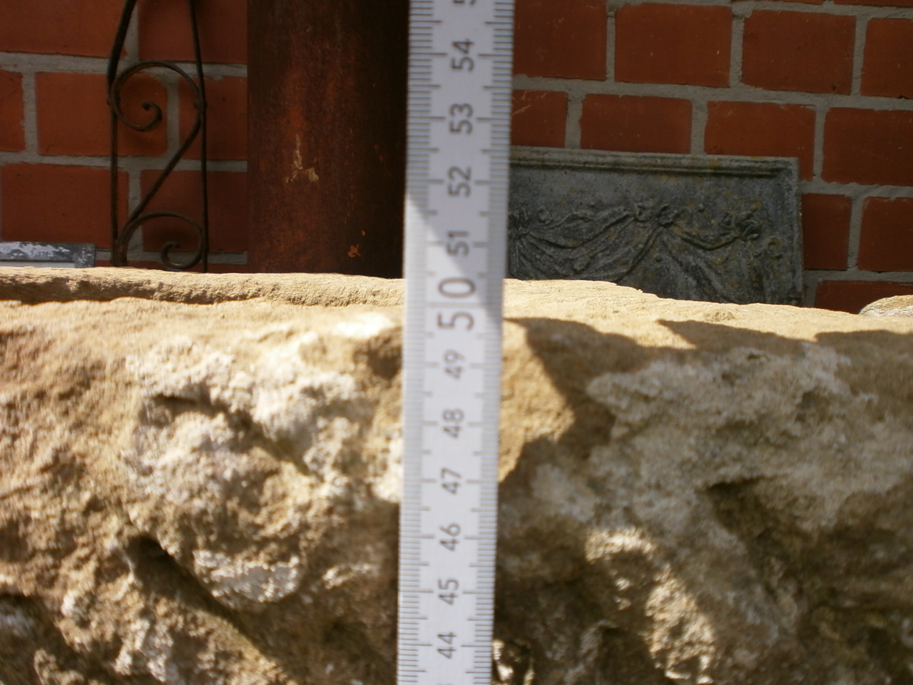 Die Pumpe wird in dem antiken Sandstein noch verbaut.