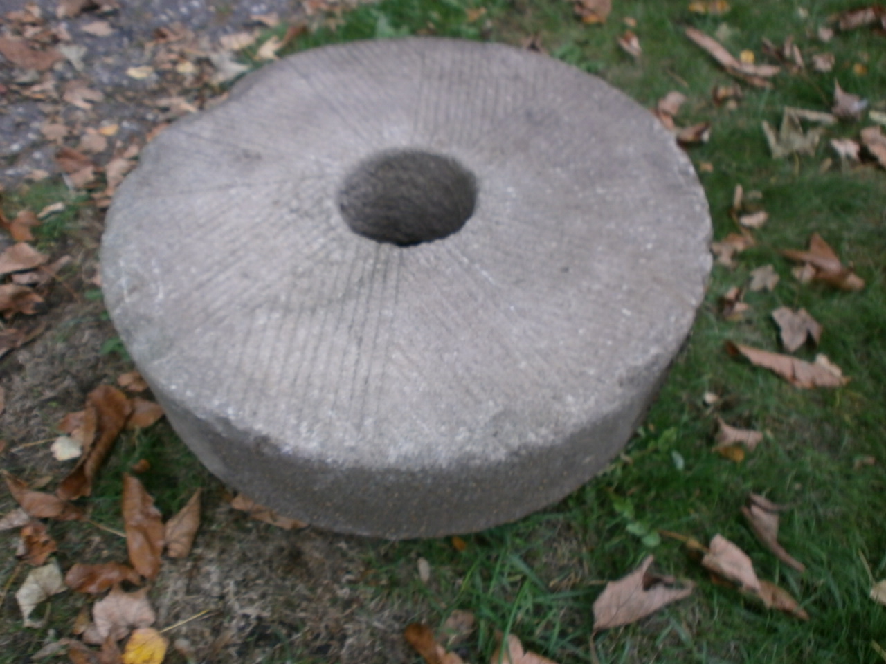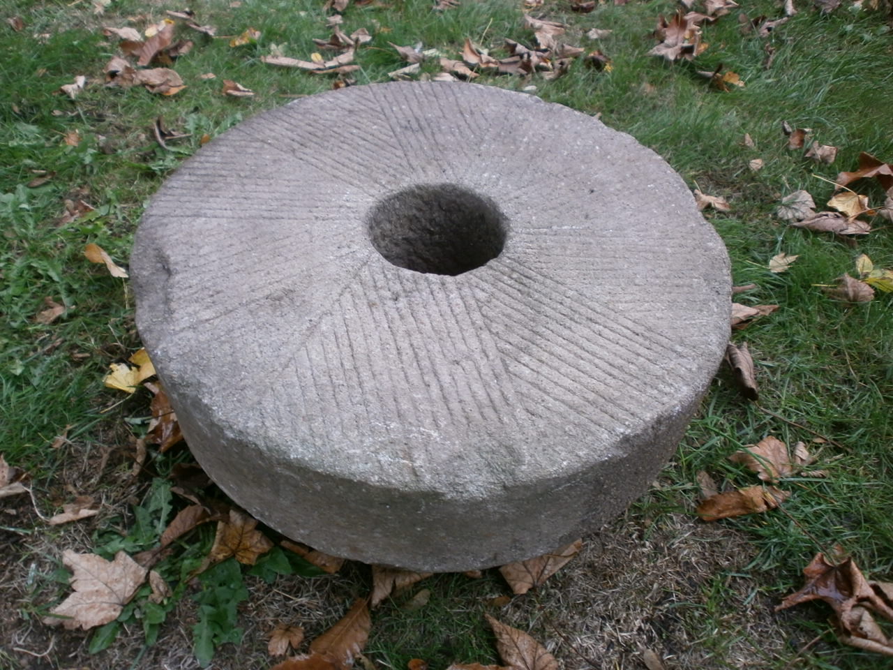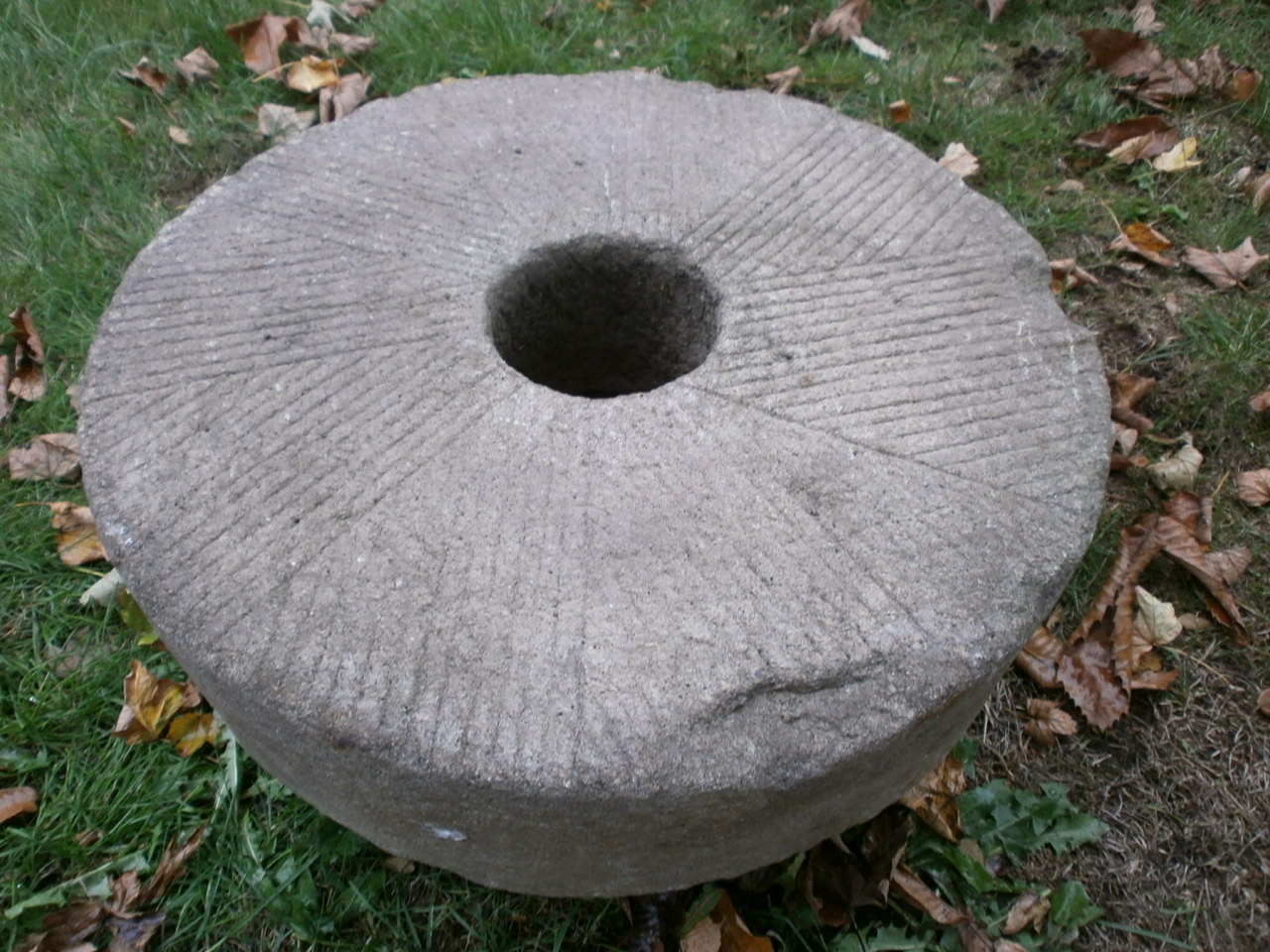 Sehr schöner Mühlstein, aus sehr gutem Sandstein. Antik. Maße: Durchmesser 51cm, Stärke 13cm