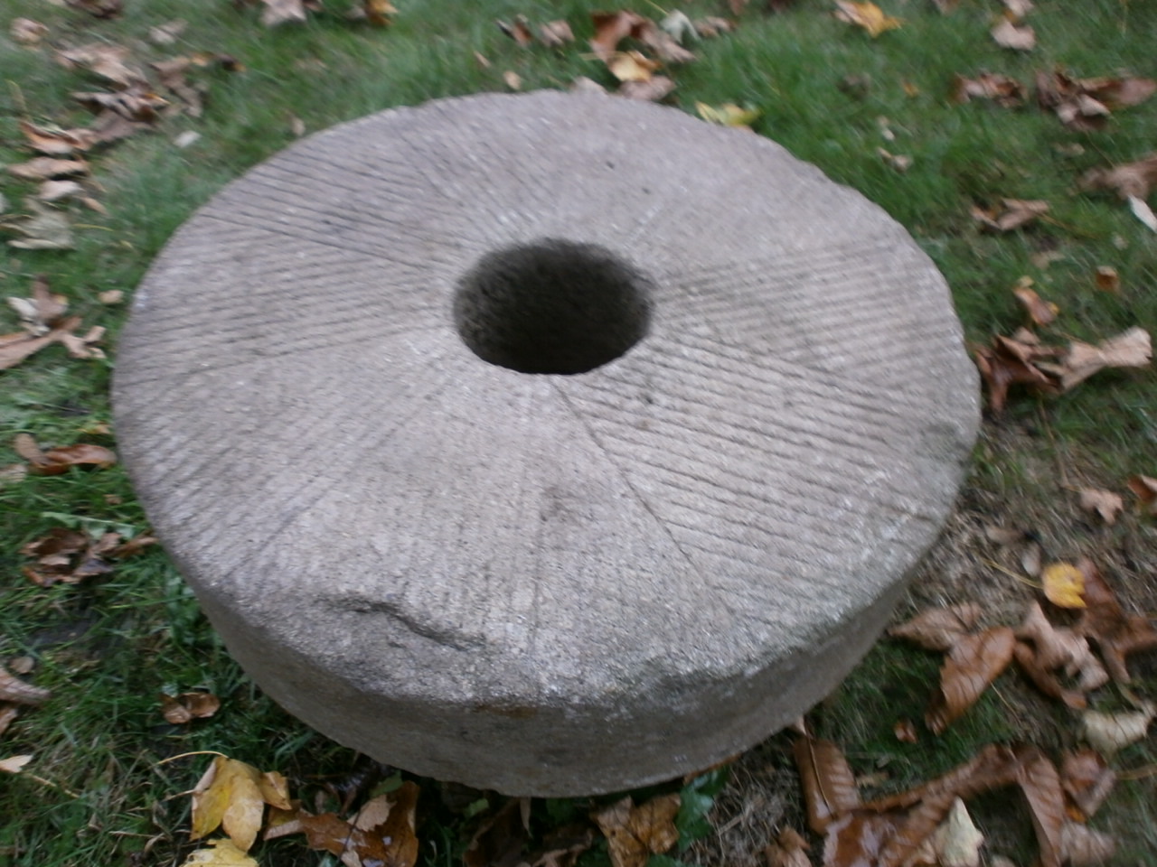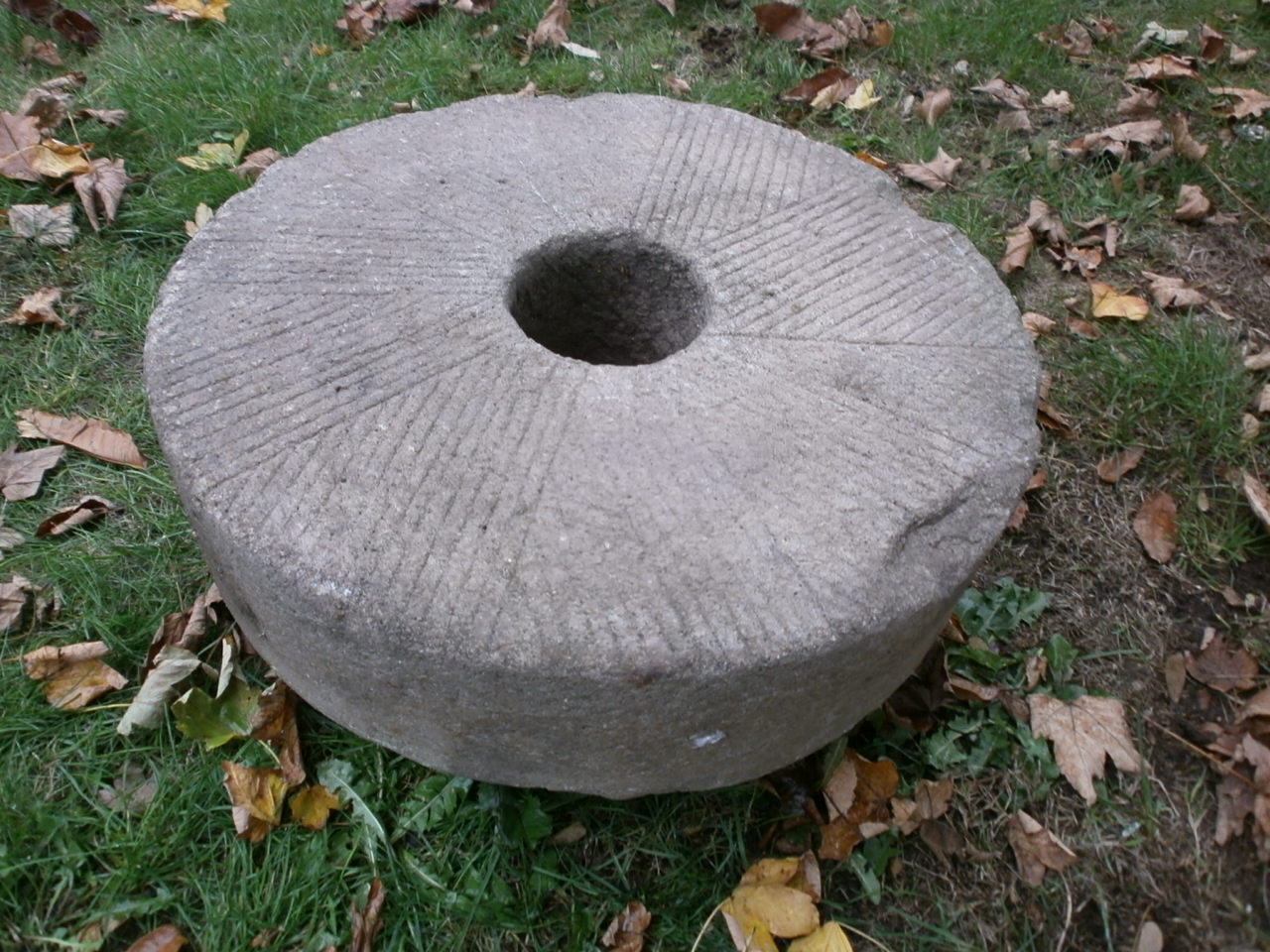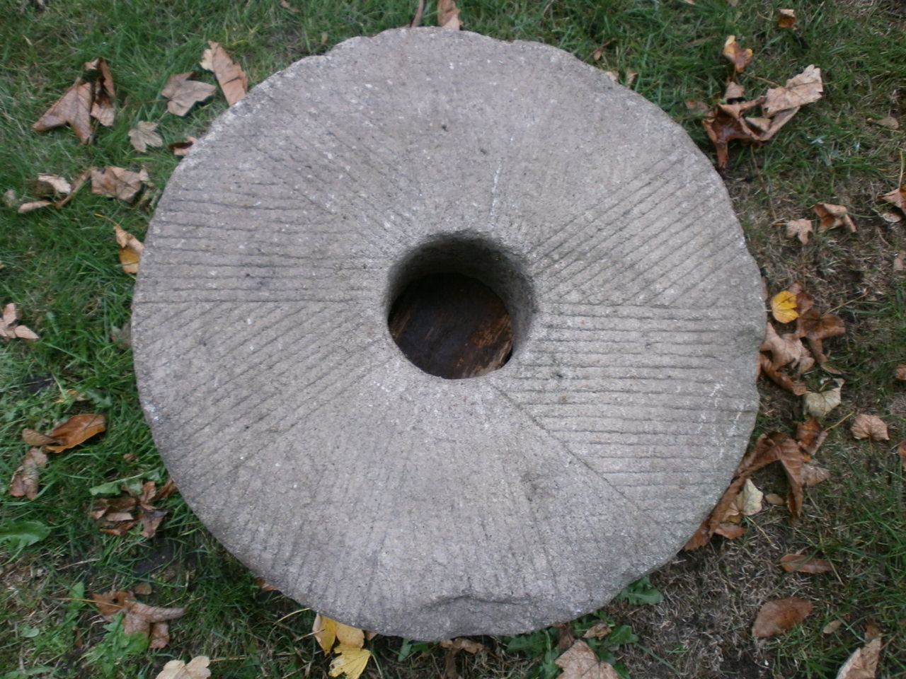 Sehr schöner Mühlstein, aus sehr gutem Sandstein. Antik. Maße: Durchmesser 51cm, Stärke 13cm